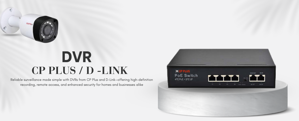Now We are Giving Our Best product in the market Which is Nvr, Dvr, Camera hd /ip, Hdd,Wires cat-6,Cp plus / d -link, Poe switch cp plus /geonix.